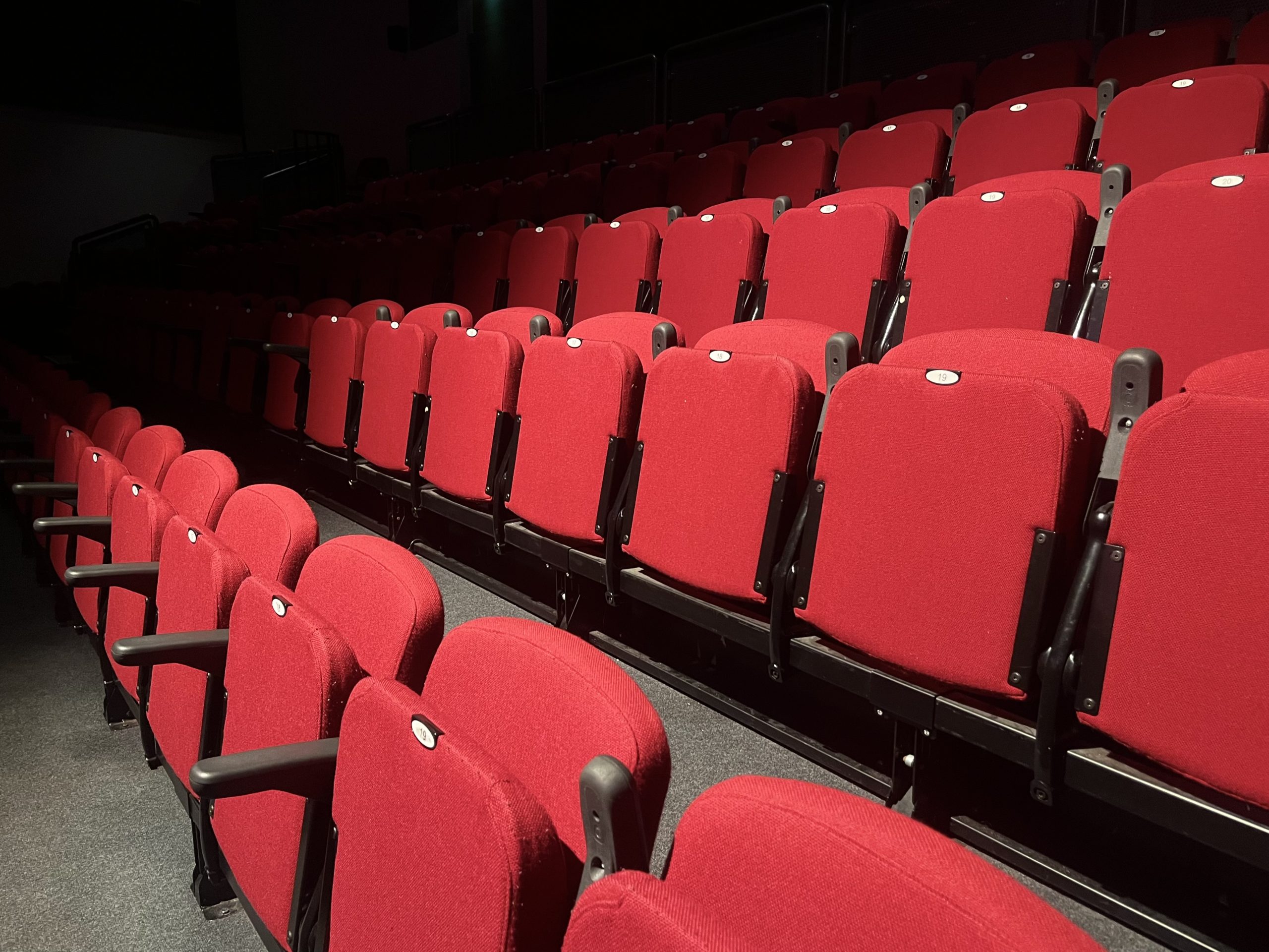 Our versatile auditorium offers tiered theatre seating for 285 people, 300 with an extra row of non-fixed seats on stage or 249 without the use of side stall seats. The centre block of the stalls can be retracted back to create a large rehearsal space.